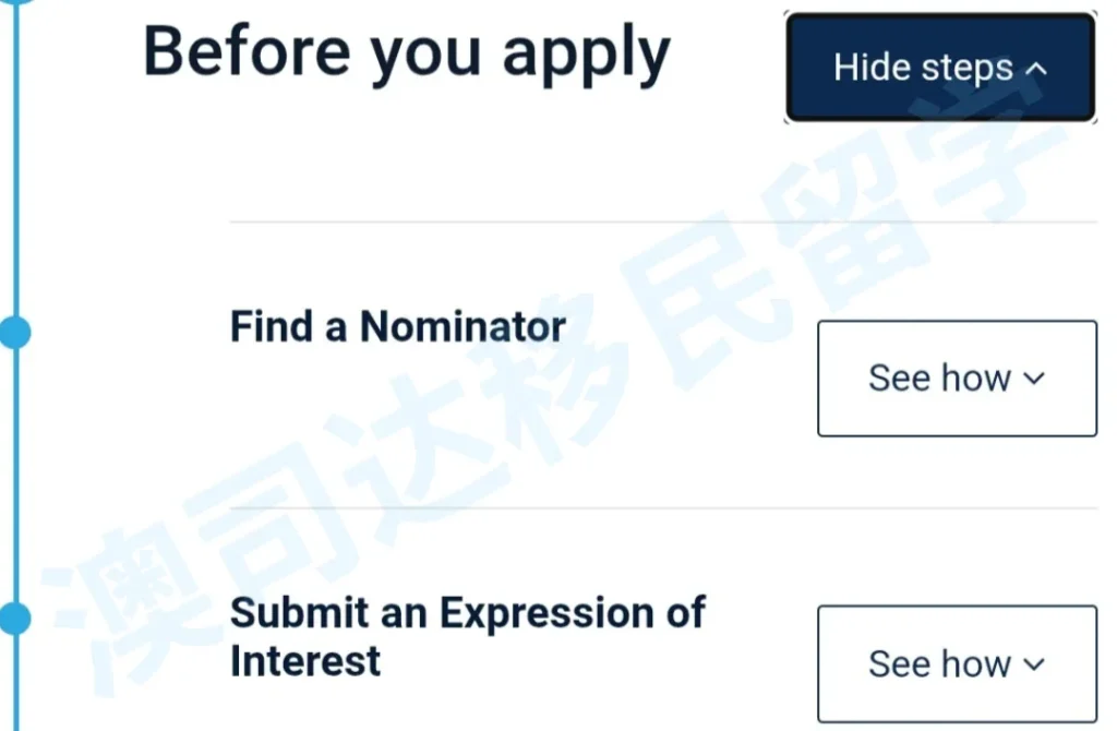 获得提名—递交意向书(EOI)—获得邀请函—递交 NIV签证申请—体检/无犯罪—预批—获得澳洲身份