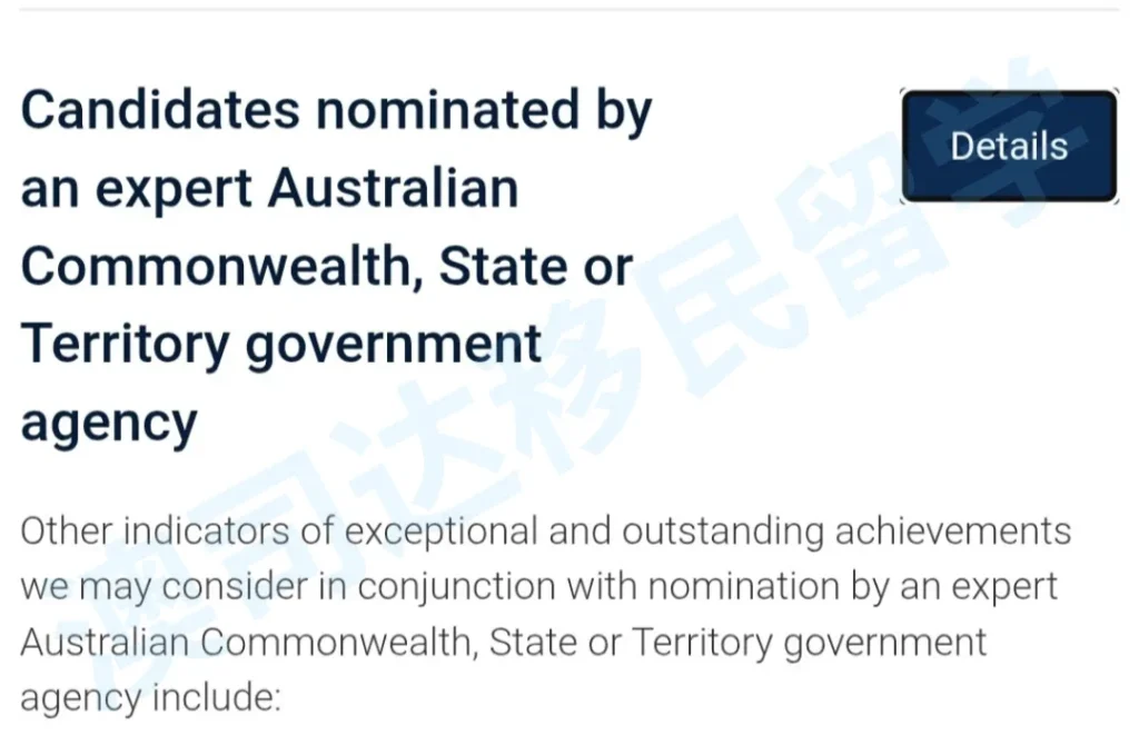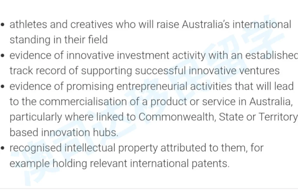需要注意的是:跟之前GTI的模式相似,在申请NIV签证时,也需获得相关领域提名人或者提名机构的提名。必须是澳大利亚公民、澳大利亚永久居民、符合条件的新西兰公民以及澳大利亚组织(如行业协会、学术机构)