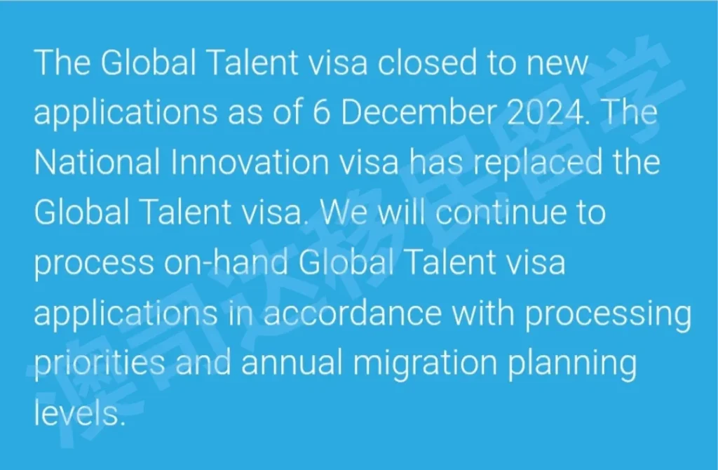 12月6日之前递交的全球人才签证申请,将按原来的标准继续审理。12月6日之后,国家创新签证取代全球人才签证,之后递交的新申请将按照修订后的标准进行审理,之前递交的EOI申请需按照新的标准重新递交