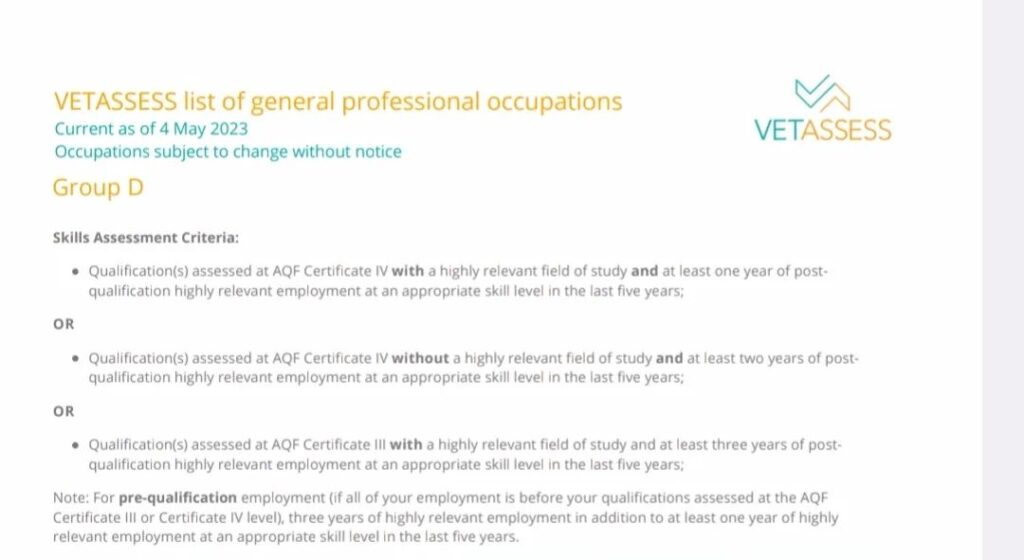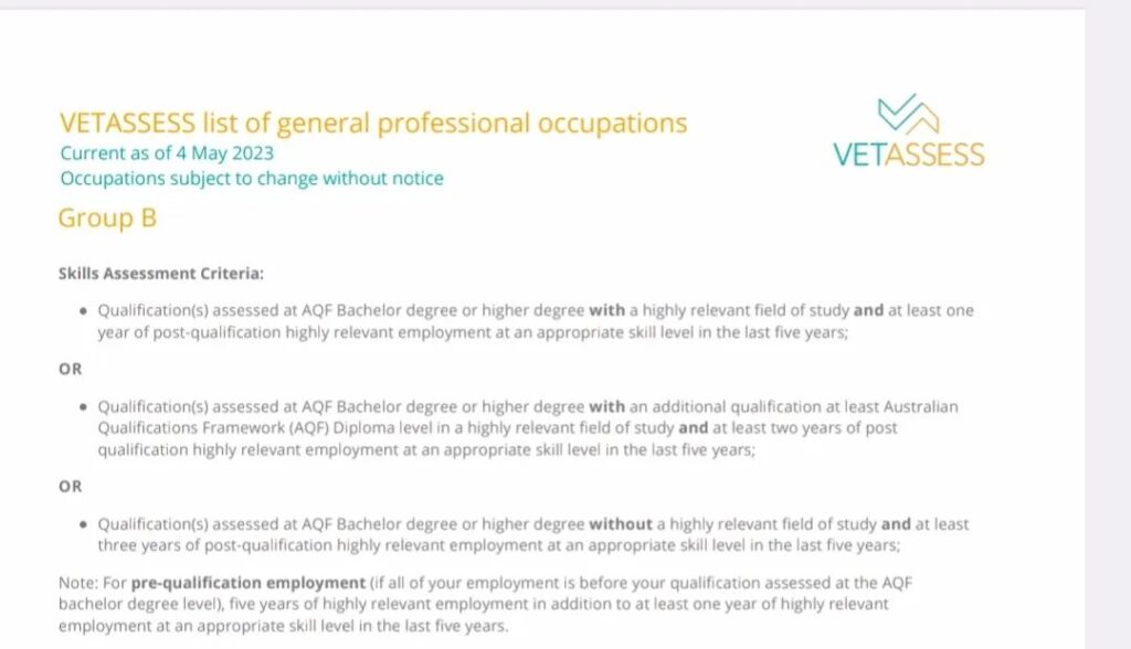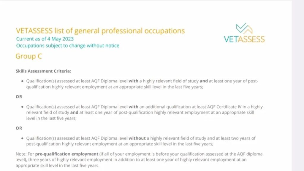 对于技能工种类,VET将职业评估分为2组,没有相关澳洲职业技能学位的申请人和获得澳洲相关职业技能学位的申请人