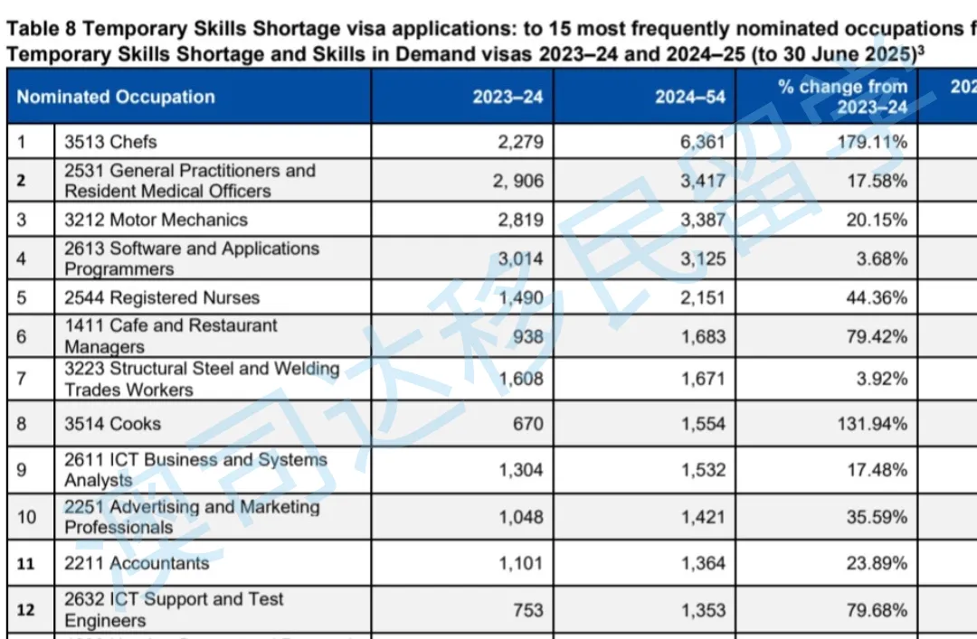 澳洲推出SID签证后,大量职业可以通过482转186拿身份,导致482申请数量大涨。24-25财年,澳洲482仅算主申请人,数量就超8.6万个,同比增长34.5%