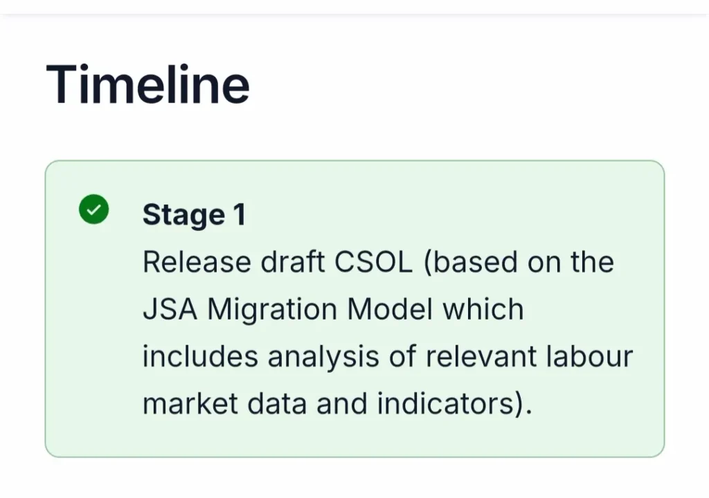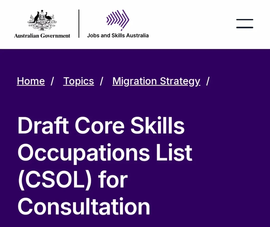 其中,核心技能通道的薪资水平暂定在7万到13.5万澳元,适用于大部分考虑雇主担保的申请人。而本次由澳洲工作及技能委员会(JSA)提出的职业清单草案(CSOL),就是针对这一通道,目前处于意见征集,最终结果不一定被政府采纳