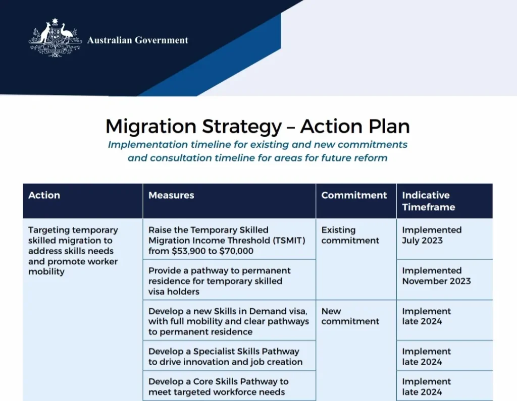 早在2023年12月,澳洲就发布移民战略,计划改革雇主担保,推出一项新的为期4年的紧缺技能临时签证,取代目前的482雇主担保签证,申请人将有机会更换雇主,并获得永居的明确途径,雇主担保按照职业和薪资分为三个通道:专业技能通道,核心技能通道,基础需求通道