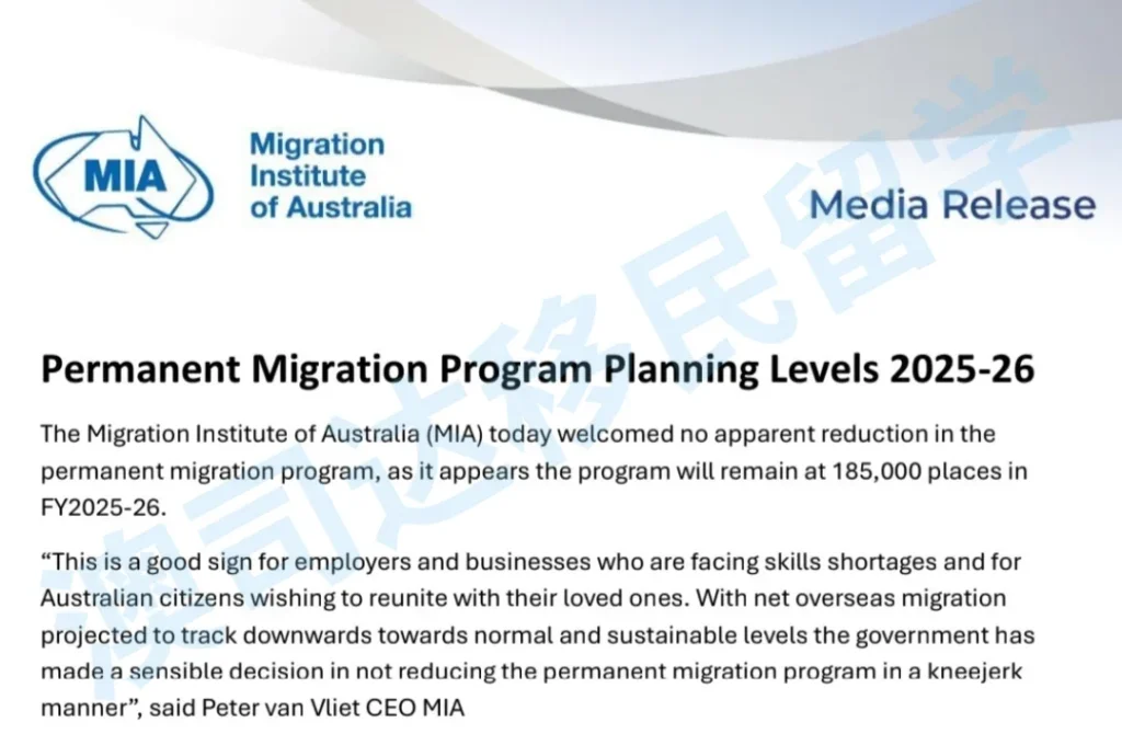 昨日,澳洲内政部部长官宣25-26财年移民配额,总量维持在18.5万人的水平。与24-25年度保持一致,继续以技术类签证为重点,预计占总配额的70%多。政府表示,在与各州及领地政府多轮磋商后,决定维持目前计划的规模与结构,具体如下
